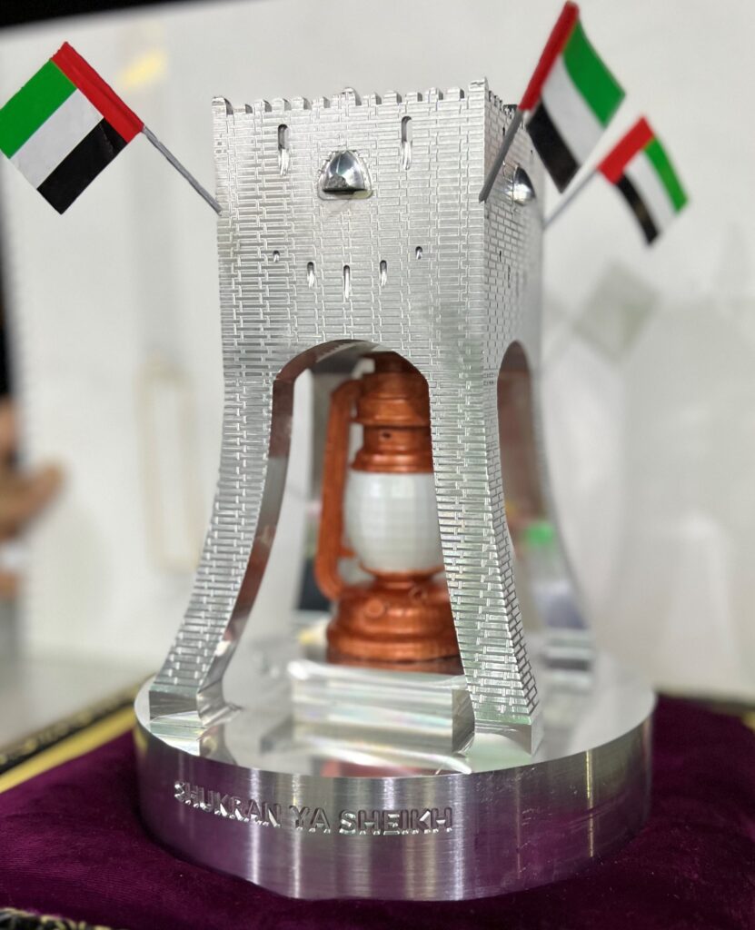 We offered him our well wishes and as a token of our appreciation, presented him with a replica of the famous monument of the lamp roundabout, which was machined out of aluminum block at our workshop.
